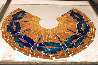 As the pieces were cut and fit to the pattern, the colors were checked on our light table. Subtle changes in the yellow background glass were carefully planned at this stage.