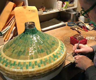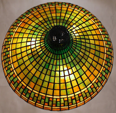 An overhead view of the shade shows the subtle interplay of colors. Six different closely related glasses were skillfully blended to created this shade.