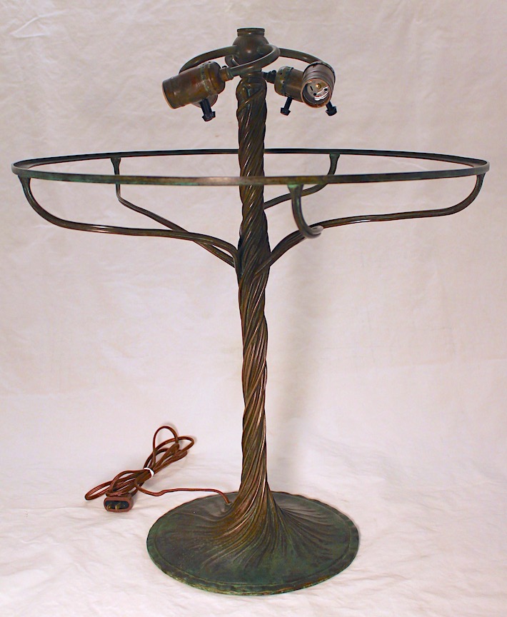 The shade has been mated with the striking Twisted Vine w/Arms and Rim (18″ tall to the shade support rim). This beautifully organic lamp base elegantly represents the underwater tendrils of the lily pads that float on the surface of the pond. This impressive lamp is new to our showroom and is currently available for purchase.