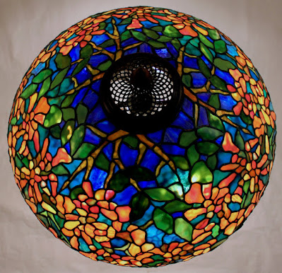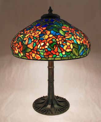 Tiffany Studios designed shades and bases to be interchangeable and this shade is equally at home on the Bamboo base as it is on the Twisted Vine.