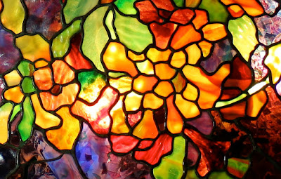The 28″ Trumpet Vine is a large shade that is usually hung as a chandelier fixture, but can also be used as a floor or table lamp. Commissioned in 2012 by a client in Chicago, this shade employs many types of glass to create an explosion of color and texture. Ring mottled, streaky, fracture, and ripple glasses are combined to make the shade exciting to view from every angle. The glass used for the background of the shade is made from three different fracture/streamer glasses created at our studio, and the color shifts from deep purple to several lighter blue/purple mixes. The decorative beaded border at the bottom of the lamp adds a whimsical touch to the piece.