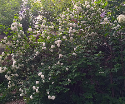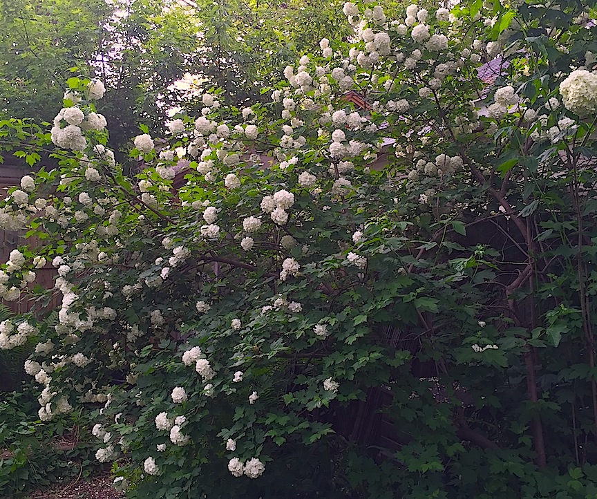 The 24″ Snowball shade is often mistakenly referred to as a hydrangea design – hydrangea flowers are conical while snowball flowers are round. Snowball bushes can reach heights and widths of 8 to 20 feet, and the large plant pictured is currently blooming in our yard. The flowers start out with green petals which turn white at full maturity. Flowers on Tiffany Lamps were rendered life sized making this large flowering bush a perfect subject for the generous proportions of a 24″ shade.