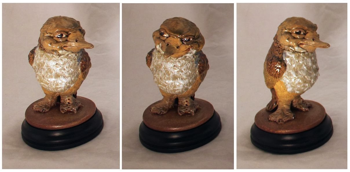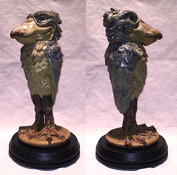 Platypus Jar – 13.5″ tall – Not strictly a Wally Bird, this jolly fellow is ready to plunge off his pedestal and go for a swim.