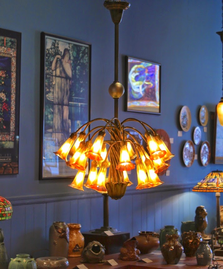 Another local remodeling project now features one of our 18 Light Lily Chandeliers over the dining table. Shown in our showroom, we create these distinctive fixtures at our studio.