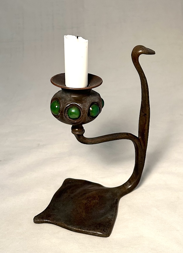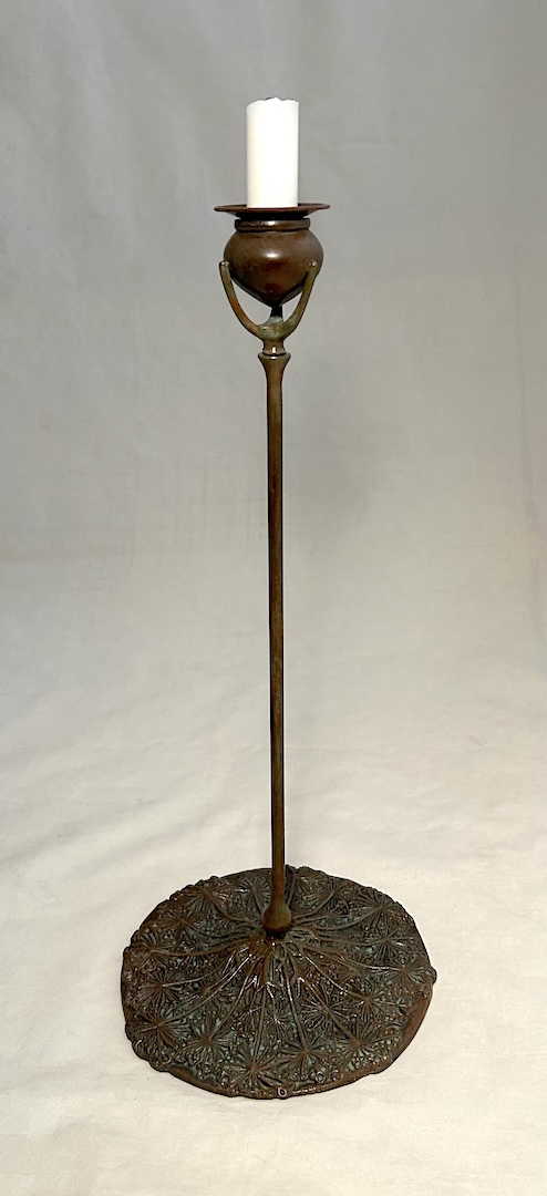 Tiffany Studios created a wide selection of candlesticks, which are beautiful as well as useful. The Lily Pad and Diamond candlesticks shown feature jeweled candle cups. These reproduction candlesticks add a stylish flair to any interior.