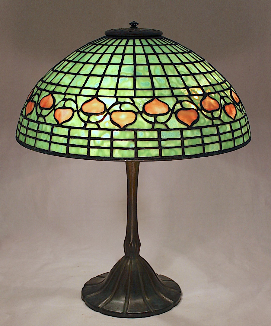 These shades provide a transition from the smaller accent lamps to large showpiece examples of Tiffany style. The variety of design options and limitless color combinations are extremely versatile and perfectly suited to enhance any design concept. Often used an chandeliers, the 20″ shades create a dramatic focal point in any room. The 18″ tree lamps are masterpieces of Tiffany design.