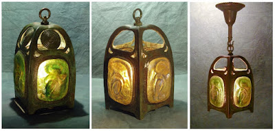 We offer our Turtleback Lanterns in two styles. The top of the lantern can be open or can be made with bronze swirls. Either style can be created as a table lamp or as a hanging fixture.
